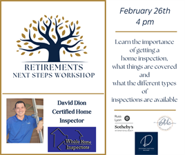 February 26th - David Dion, inspector and owner of Whole Home Inspections - learn the importance of getting a home inspection, what things are covered and what the different types of inspections are available.