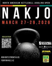 Join us at Iron Roots Strength & Co, March 28 & 29 for NAKJO(North American Kettlebell Juggling Open). This is the only national qualifying event for the Kettlebell Juggling World Games. Professionals from all over the US, Canada, Central America, and South America will compete in this 2-day event! All welcome! Spectator tickets can be purchased at http//:www.aakjuggling.com. or at the door Saturday and Sunday.